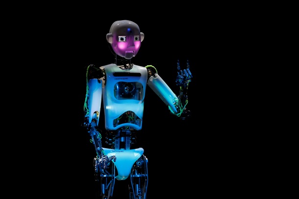Этот робот произвёл настоящий фурор — именно он вёл церемонию открытия выставки. Робот, запрограммированный на общение с посетителями, выполнен в человеческий рост и буквально излучает дружелюбие.