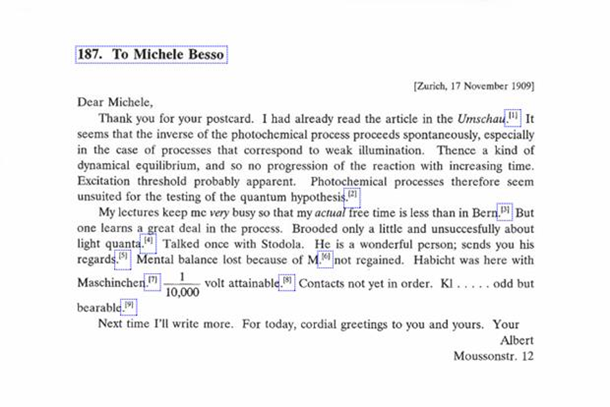 В опубликованных материалах есть личные письма ученого, его заметки по специальной теории относительности, ранние работы (до 1923 года) и переписка с лучшим другом Микеле Бессо.