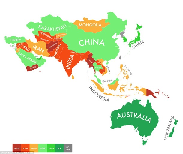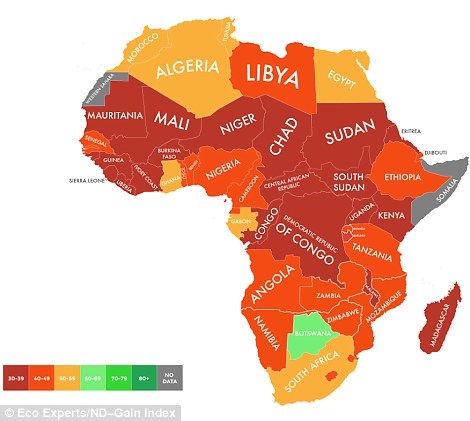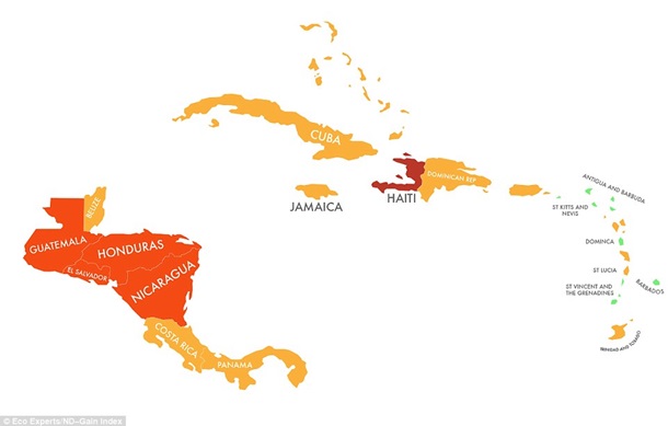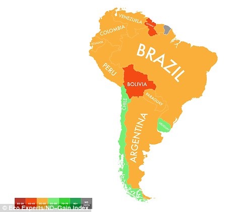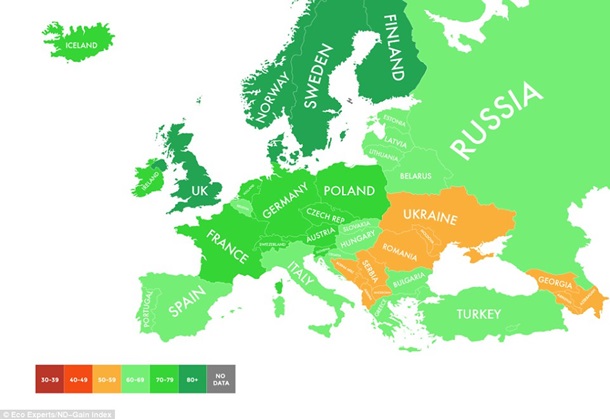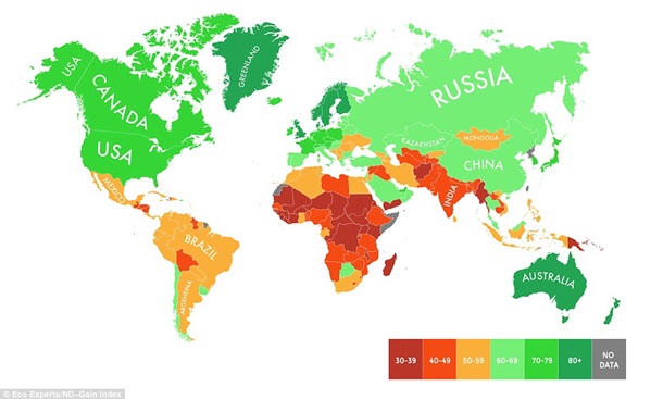 Лондонская компания The Eco Experts, используя данные университета Нотр-Дама, опубликовала карту, показывающую степень готовности разных стран к изменению климата.