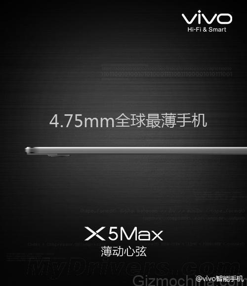 Китайская компания Vivo представила самый тонкий в мире смартфон под названием Vivo X5 Max.