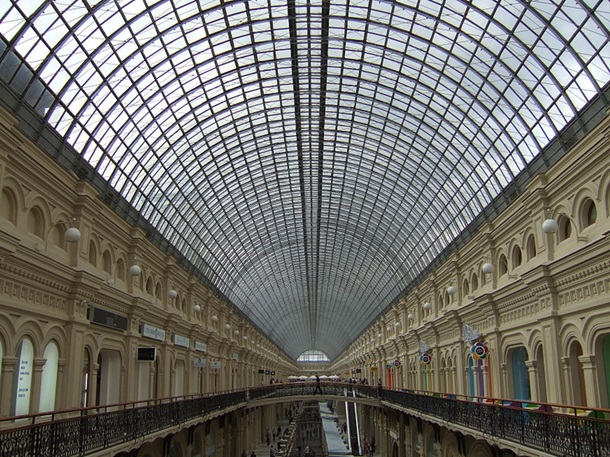 Шуховские перекрытия есть еще на двух знаковых для Москвы зданиях — ГУМе на Красной пл. и Государственном музее изобразительных искусств им. Пушкина на Волхонке. Во втором случае перекрытия были необходимы для постройки стеклянной крыши. Музей открылся в 1912 году, и, хотя в московских домах уже давно практиковалось электрическое освещение, изначально в здании музея оно предусмотрено не было — в залы поступал солнечный свет через потолок.
