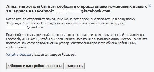 Теперь все пиьма будут перенаправляться именно на указанные в профиле адреса не родного "фейсбучного" почтового сервиса.