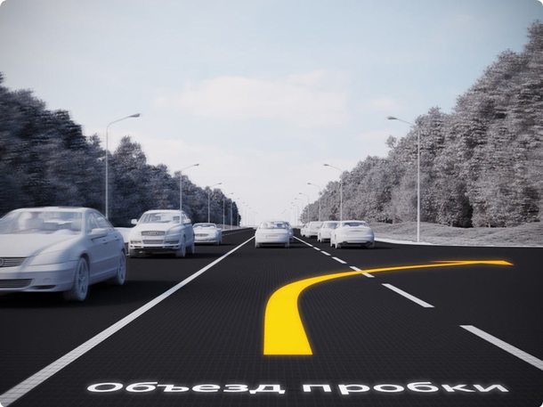 В студии Артемия Лебедева разработали концепт дороги-экрана - визуальной системы, которая сможет сообщать водителям о дорожной ситуации, менять разметку, проецировать дорожные знаки и полезные подсказки.