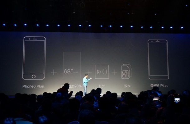 Не только названием, но и слоганом Honor намекает на конкуренцию с iPhone 6 Plus. Так, девиз "яблочного" смартфона - "Bigger Than Big" ("Больше, чем большой"). Китайцы ж решили использовать фразу Bigger Than Big" ("Не просто большой").