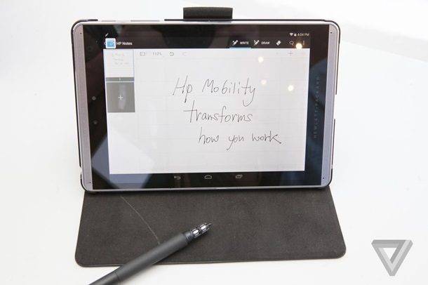 Однако в HP уверяют, что большой экран – не единственное преимущество Pro Slate 12. Фирменной фишкой является "ультразвуковой" стилус Duet Pen, который можно использовать и как обычную ручку. Нарисованное в режиме реального времени отображается на экране планшета.